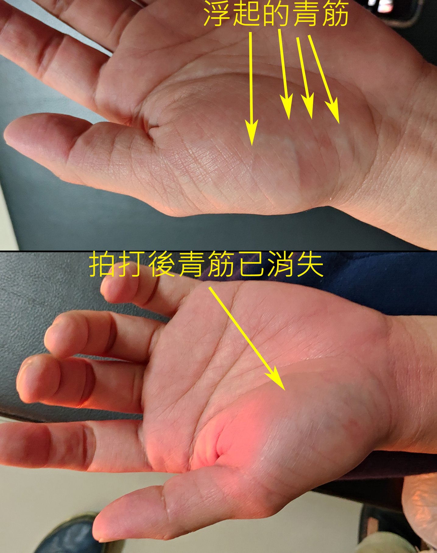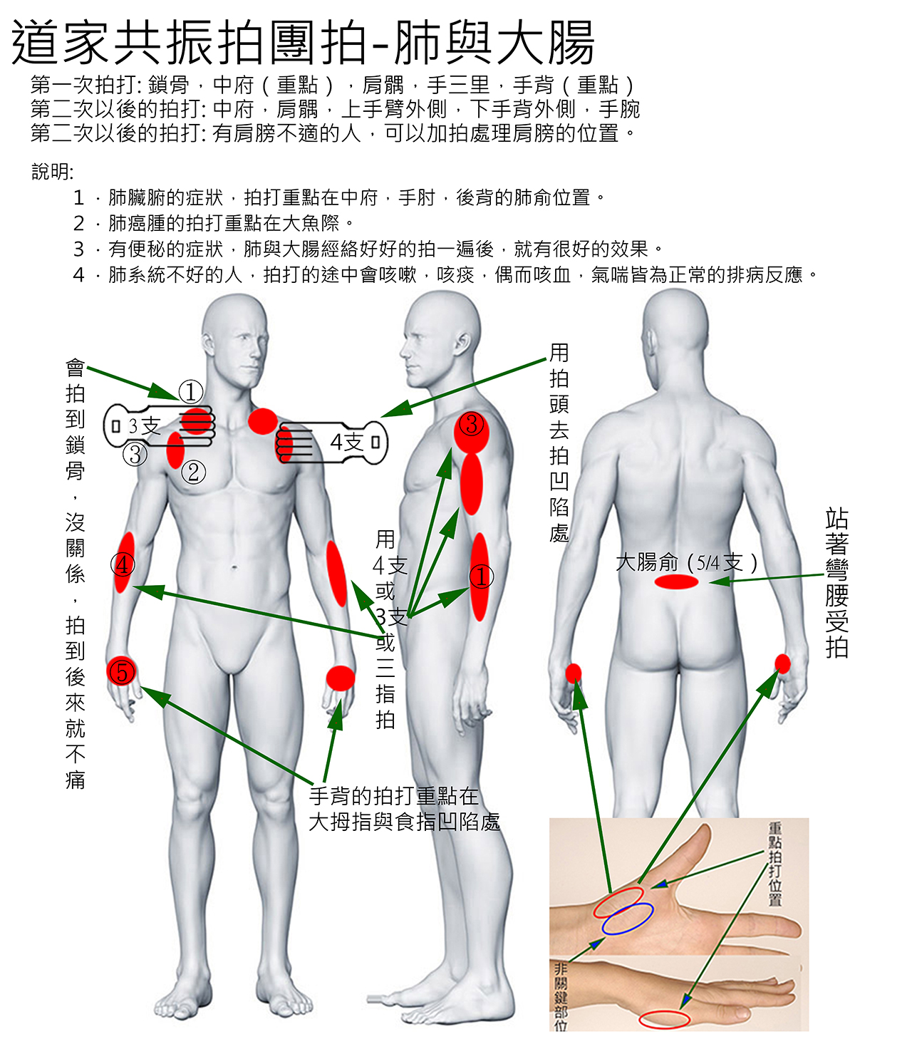 肺大腸經絡的拍打,拍完一側整條的經絡後,再拍另外一側;