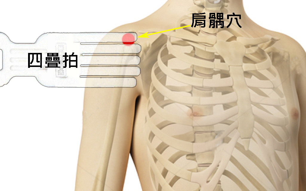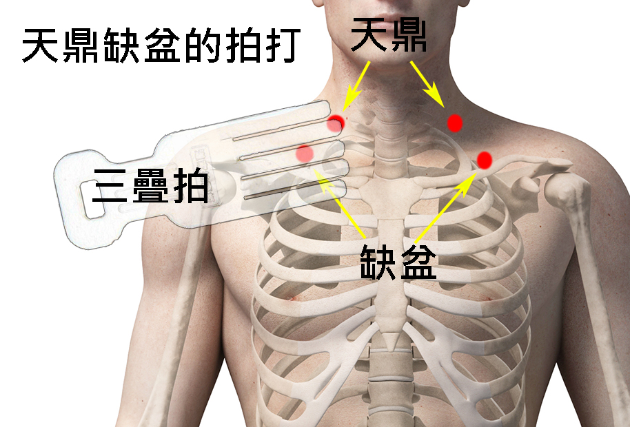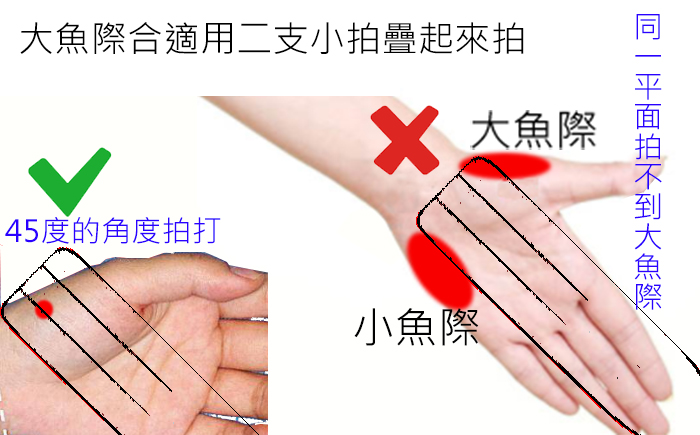 肺與大腸的經絡相鄰,拍子的寬度夠,通常可以一次的拍打到。