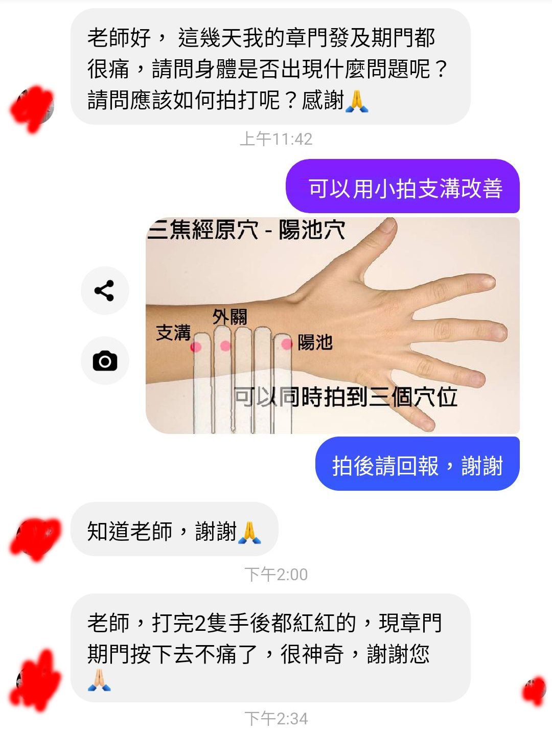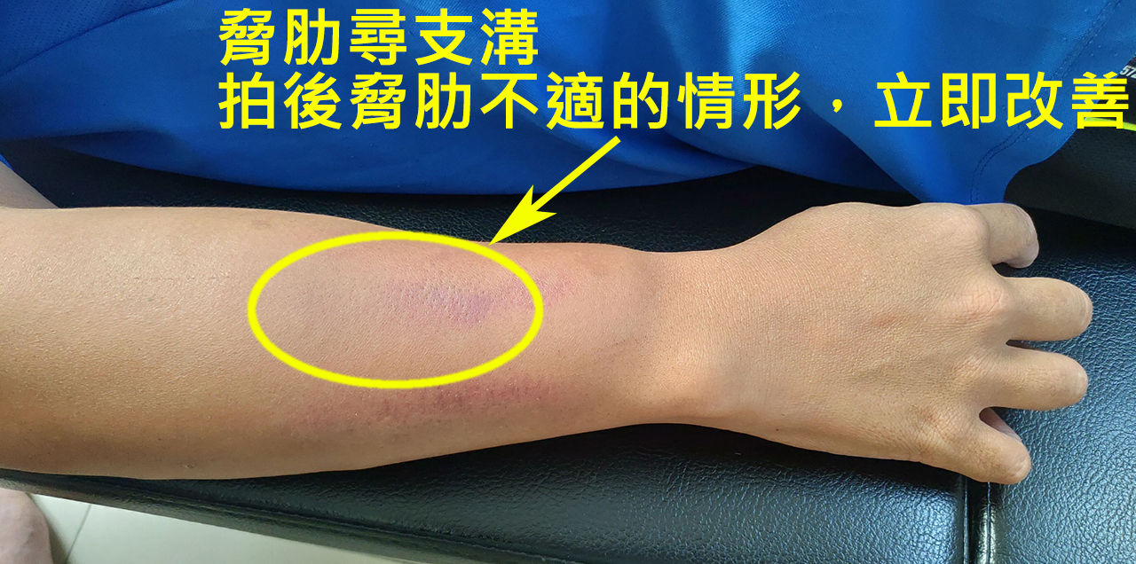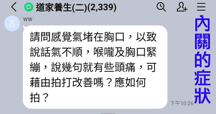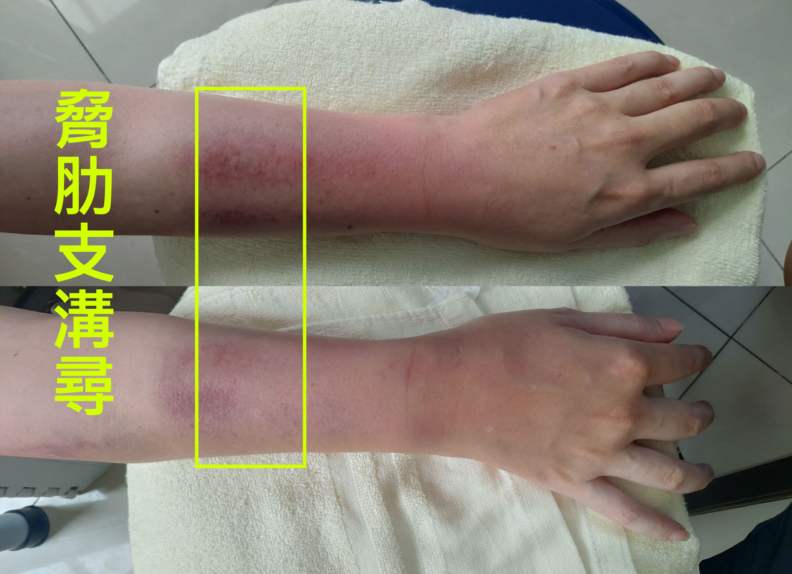 有幫手互拍的情形下,用大拍可以同時拍到內關和大棱,這二個重要的穴位。
