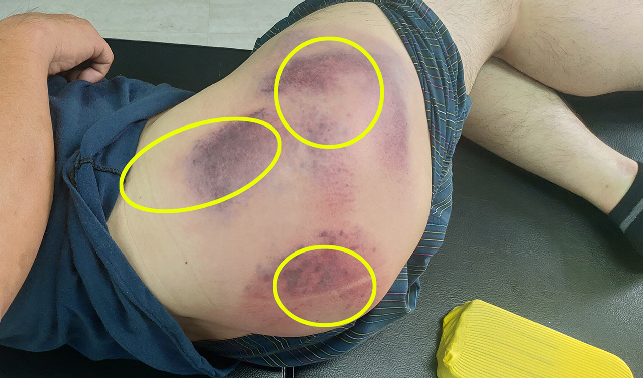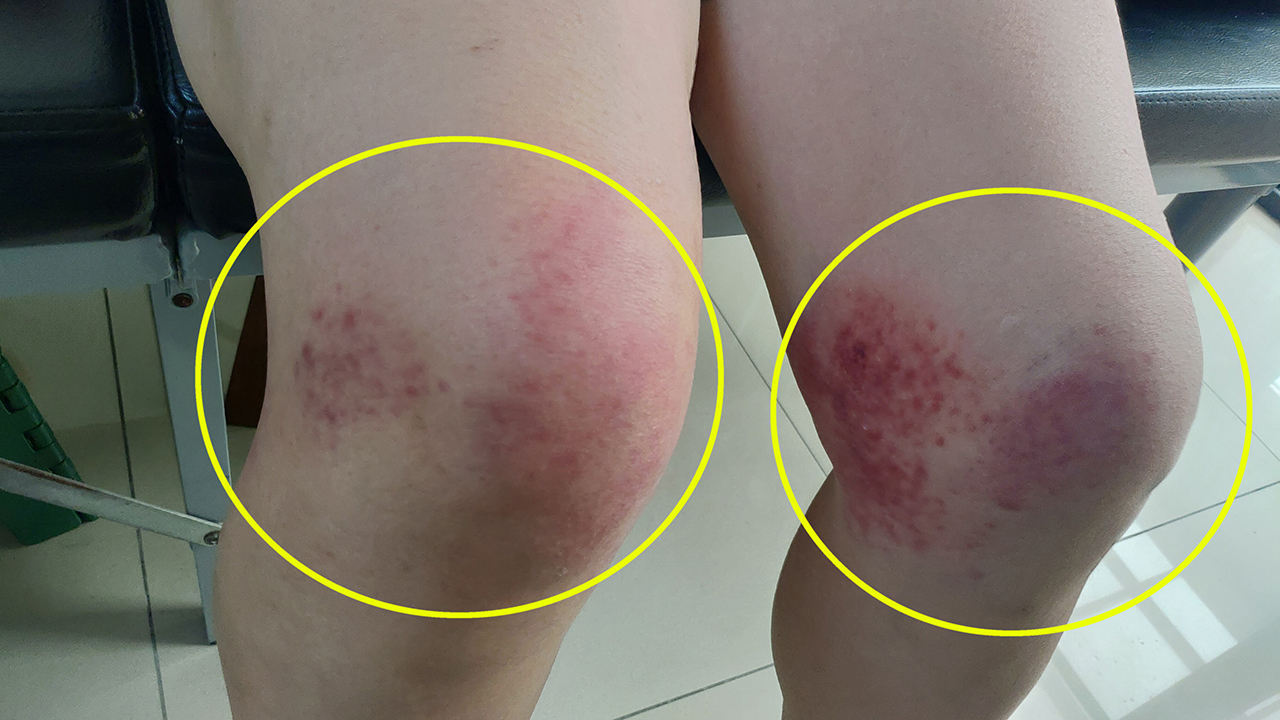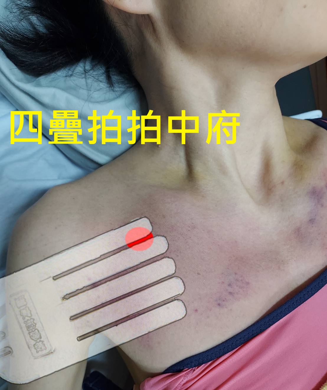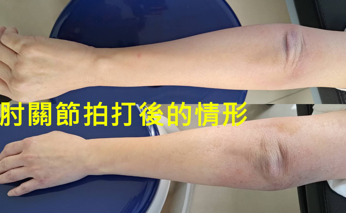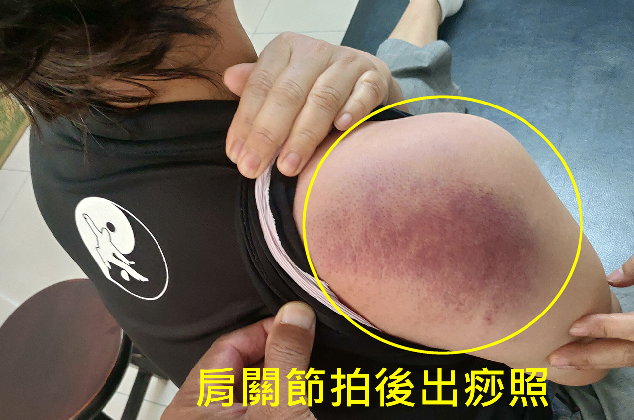 肘關節的拍後案例,痧不會很多,但是拍起來非常的痛,力道要拿捏好;