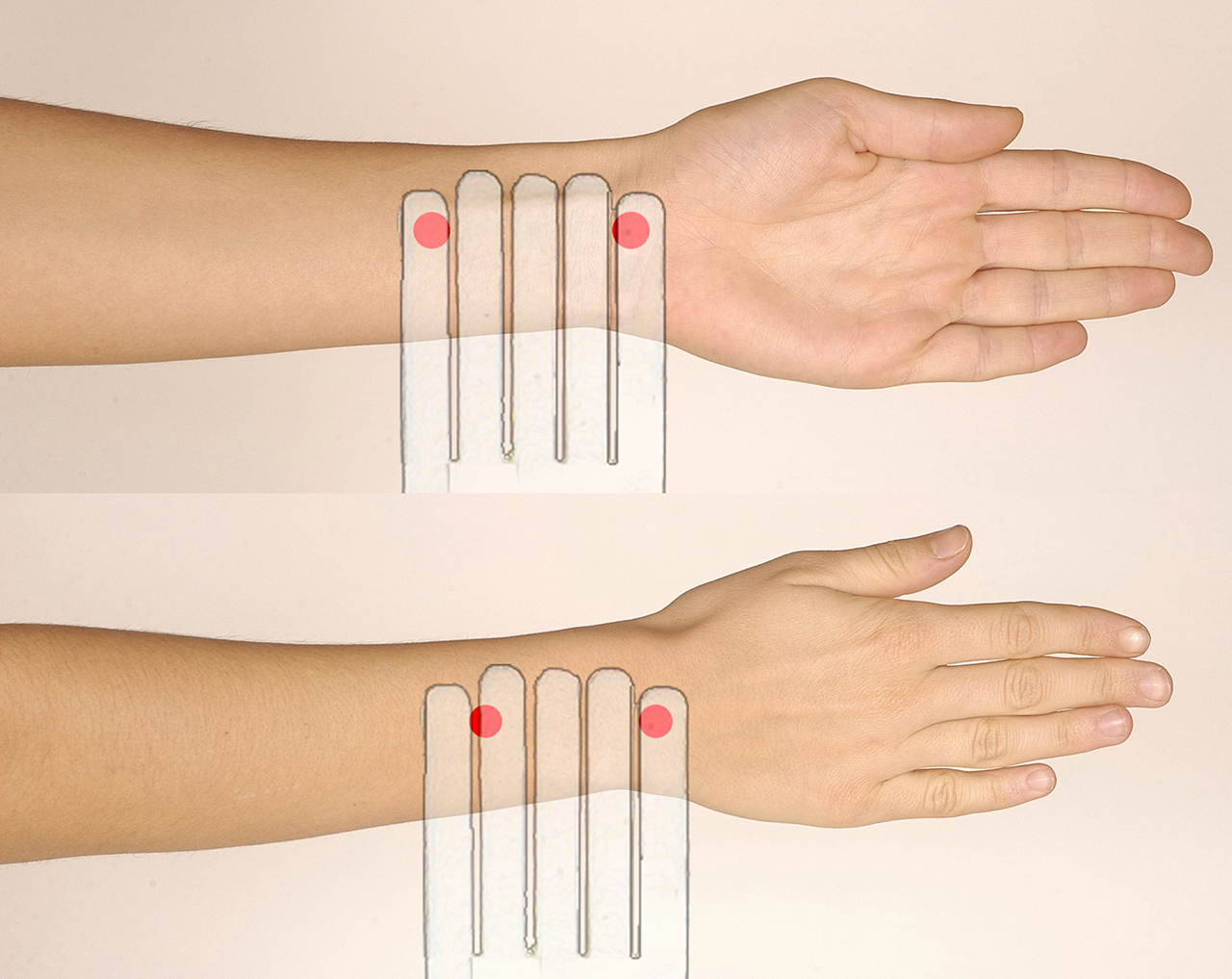 陰面需要比較多次的拍打,拍打時,拍痧板可以同時拍到大陵穴和內關穴的位置為佳;