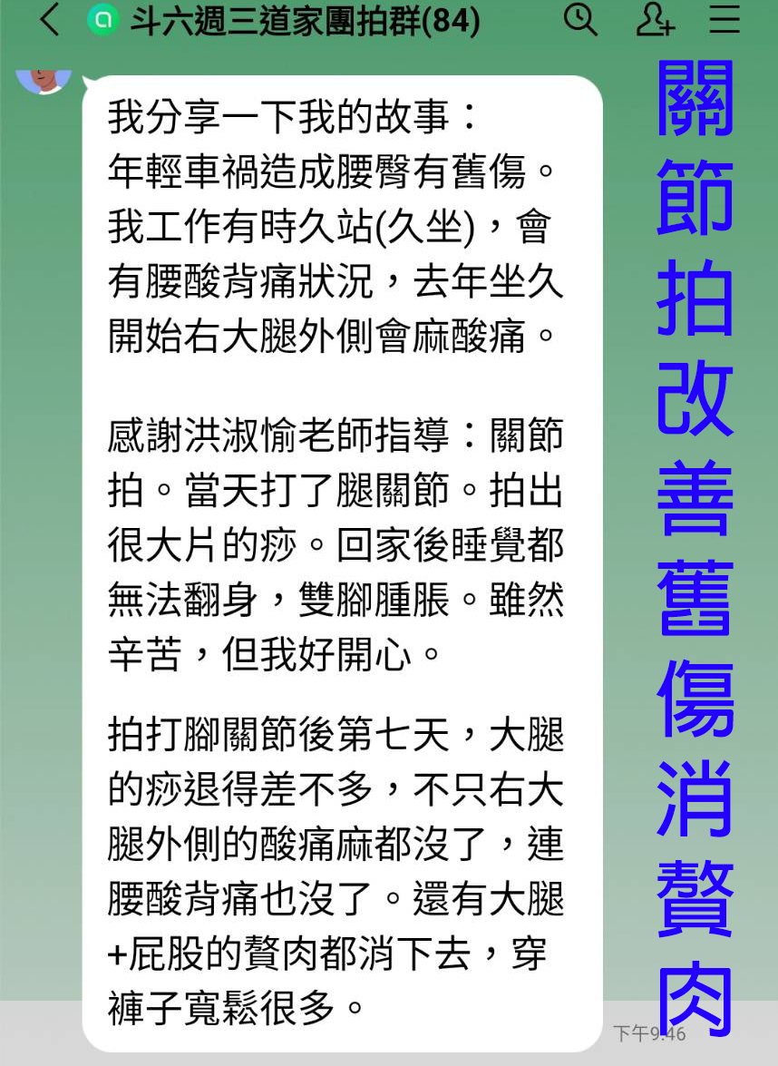 ⑥ 比較理想的做法:臟腑拍之前,關節拍的位置,先優先拍一至二次後,再來拍臟腑拍打。