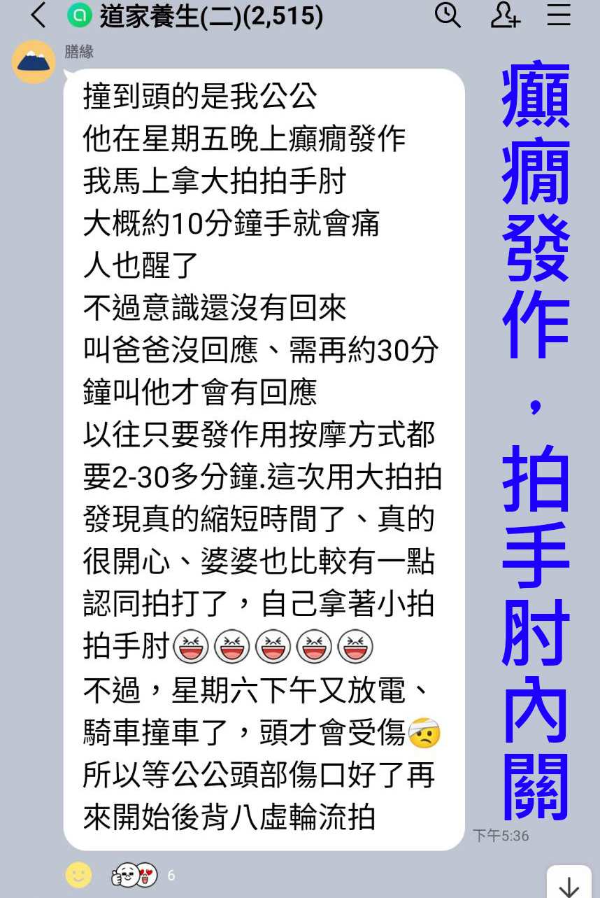 也就是當發作時,拍手肘+內關後,下次的發作時,就會發現症狀有改善了,例如:發作的時間變短了;