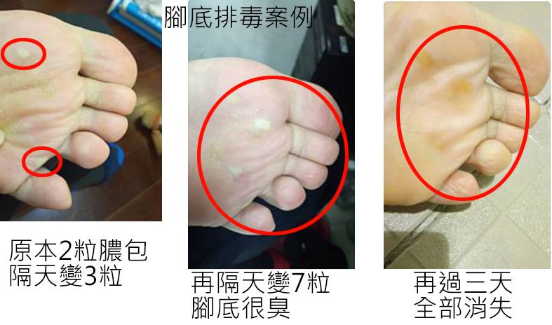 下圖:拍後排金黃色的尿液,代表排脾胃的毒素;