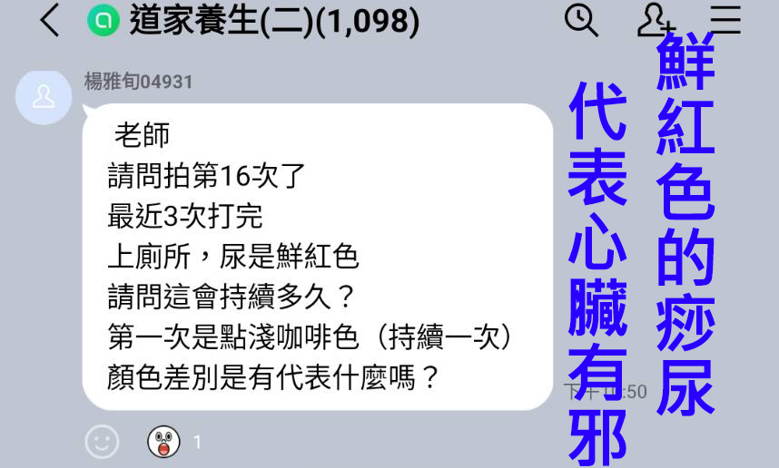 下圖:排紅色的尿液,代表心小腸受病,心小腸的痧毒明顯