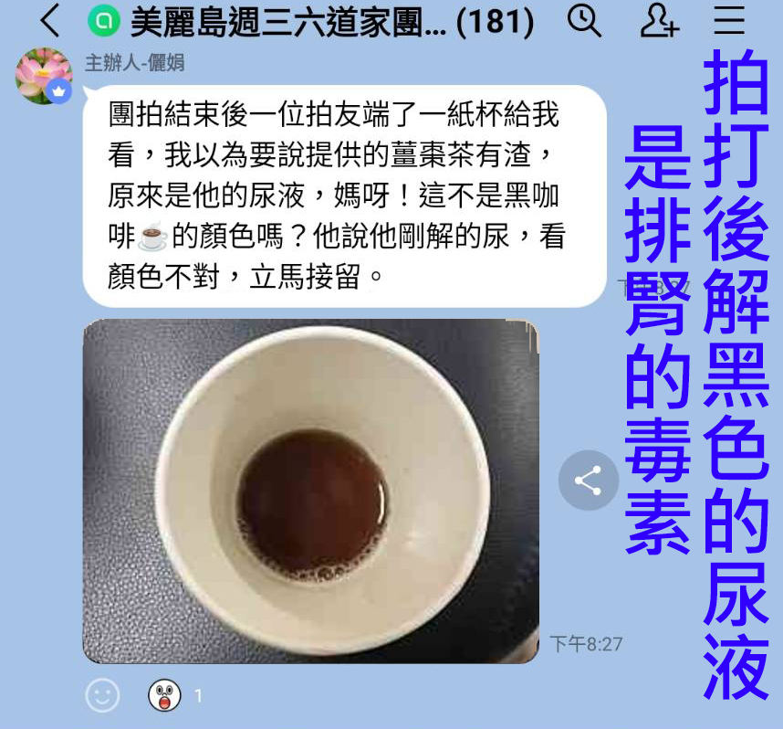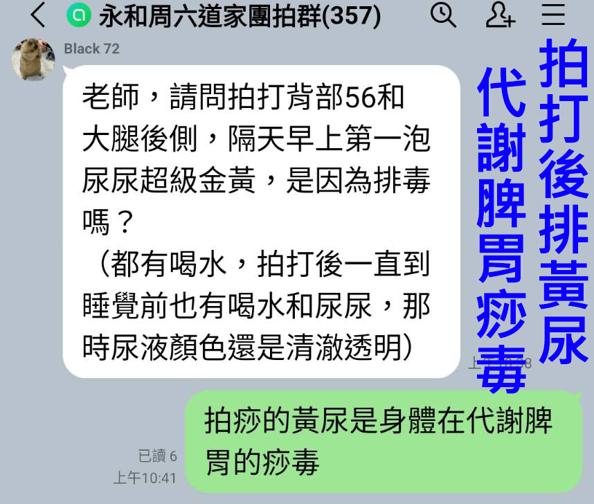 幾乎每個人拍打後,都會有尿液代謝痧毒的情形