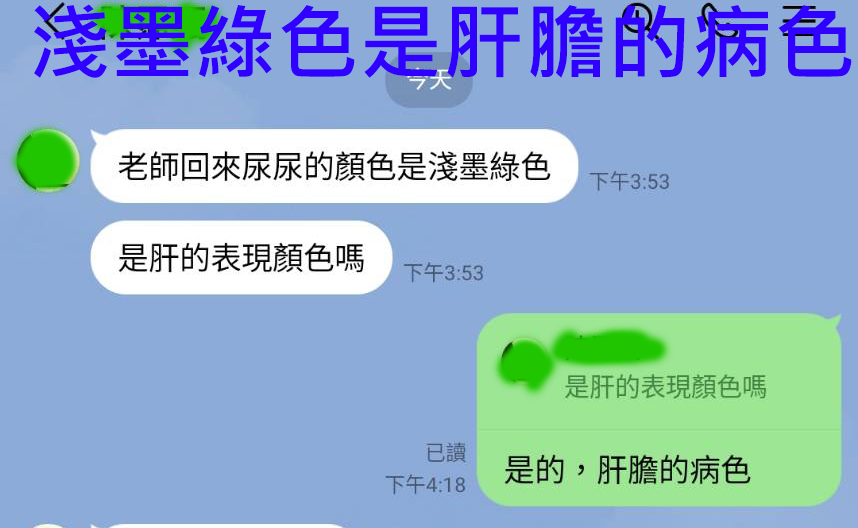 下圖:拍後排墨綠色的尿液,代表排肝膽的毒素;