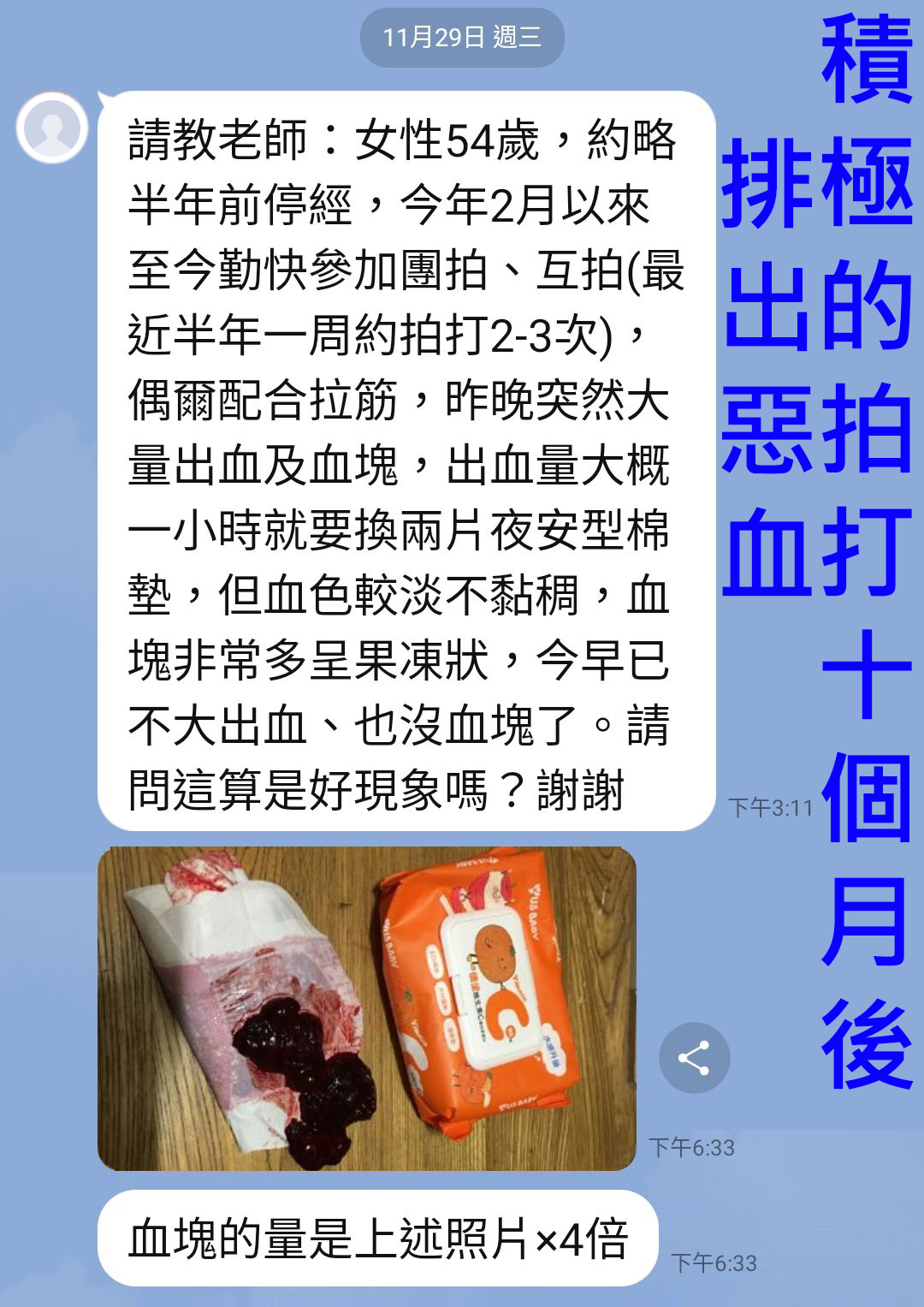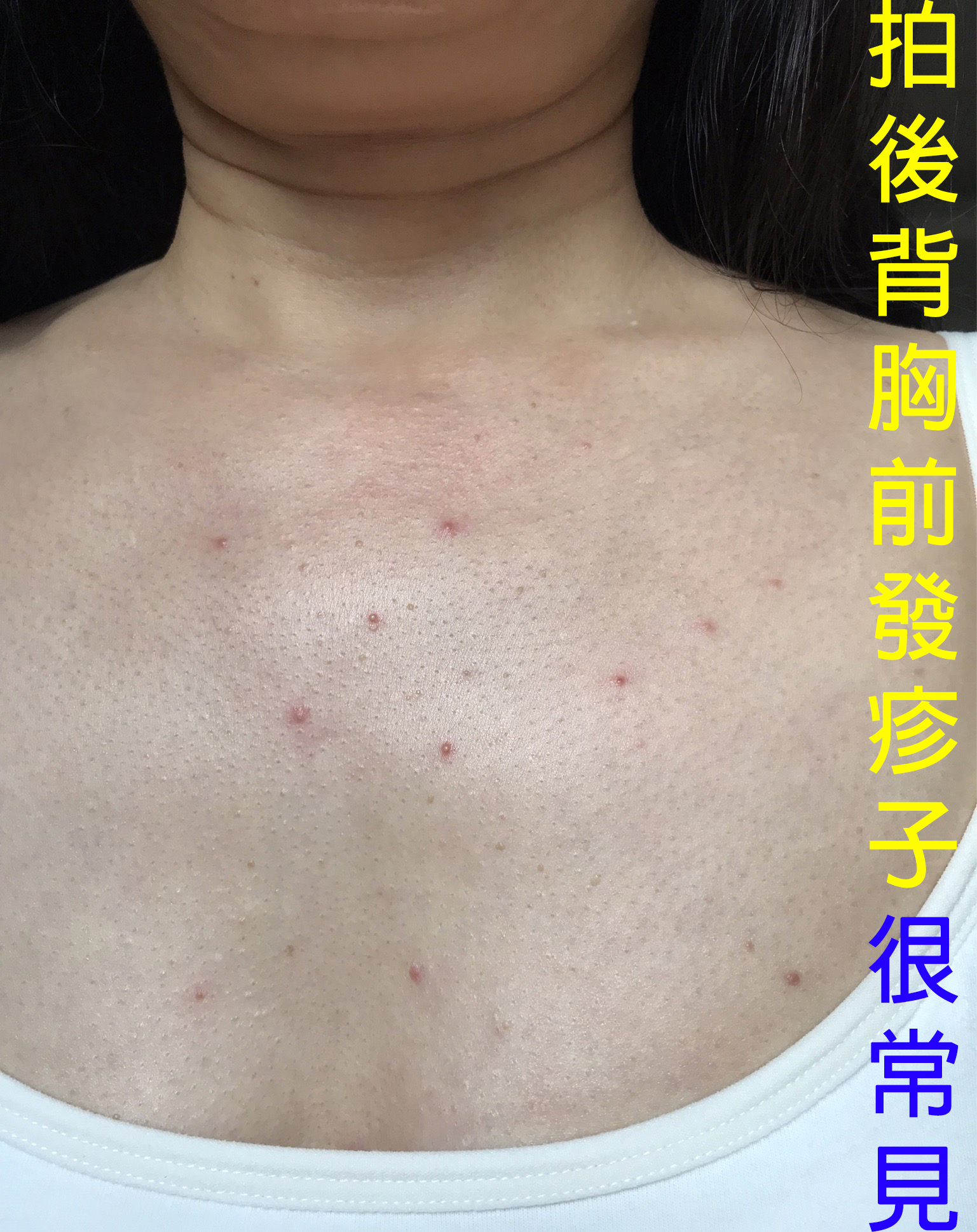 拍後的幾天,有各種的排病反應,是好事,待痧褪完後,就不會了!