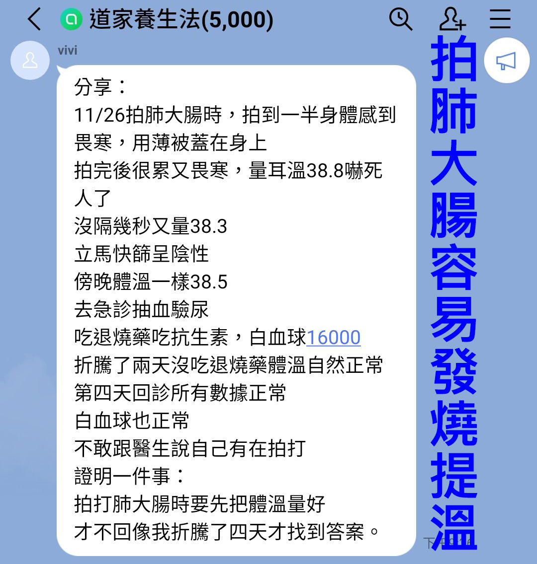 拍打後發燒是人體免疫機能回來了,所以不要吃退燒藥,吃了退燒藥會把免疫機能給壓回去。