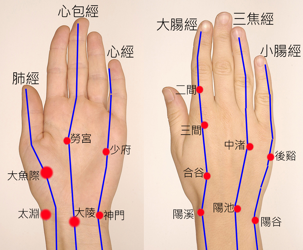此時可以做的就是拍打陰陽對位的位置,例如:左腳踝扭傷了,就拍打右手腕對應的位置。