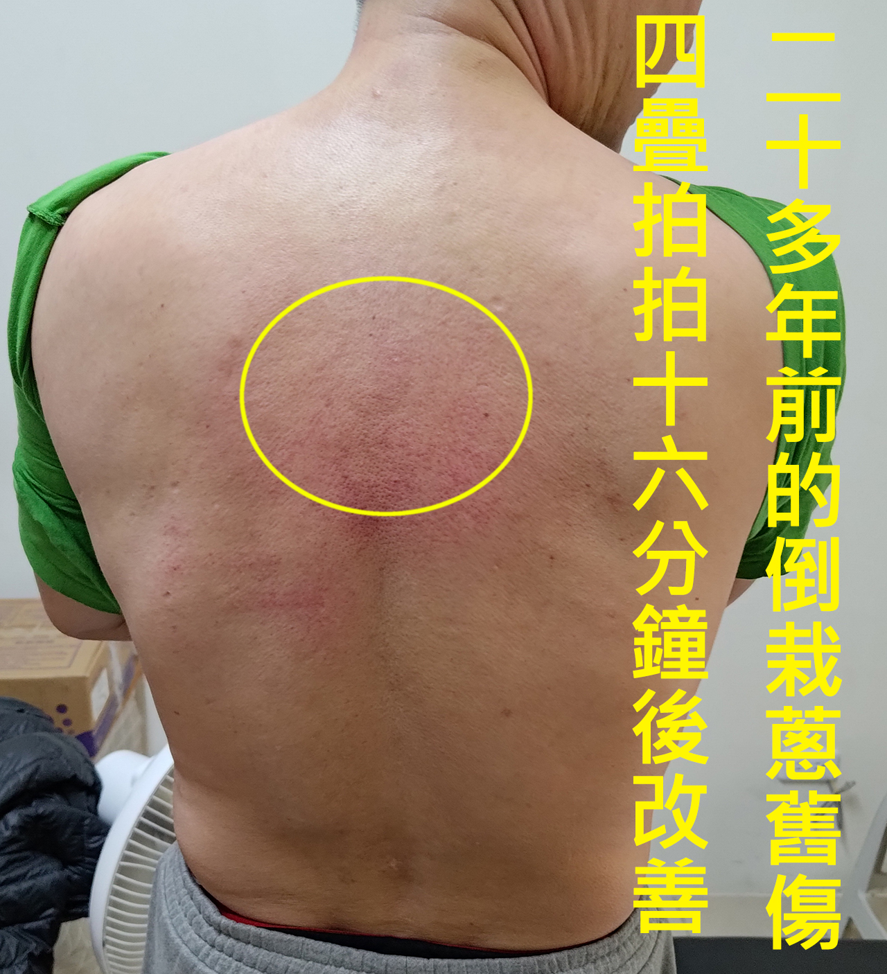 雖然新傷的患處,三個月內不拍,但是我們可以拍陰陽對位的位置改善。