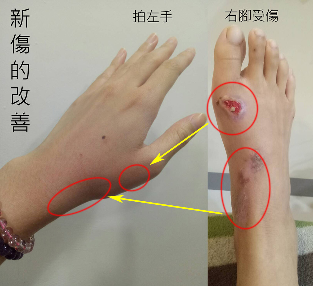 道家拍法改善長年的舊傷後,不只行動恢復自如,還恢復了萎縮的肢體,連皮膚都變好了呢!