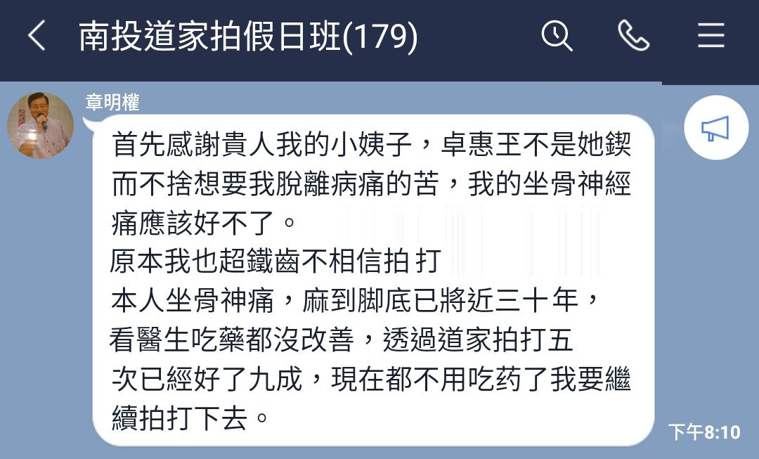 用道家拍法拍打後的幾天時間,通常會有氣衝病灶(又稱好轉反應)的情形;