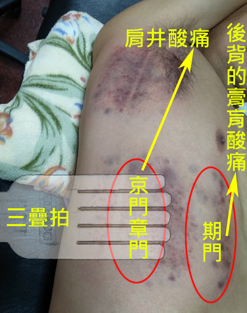 經絡比較敏感的人,拍期門時就常常會反應,後背的膏肓會酸痛;