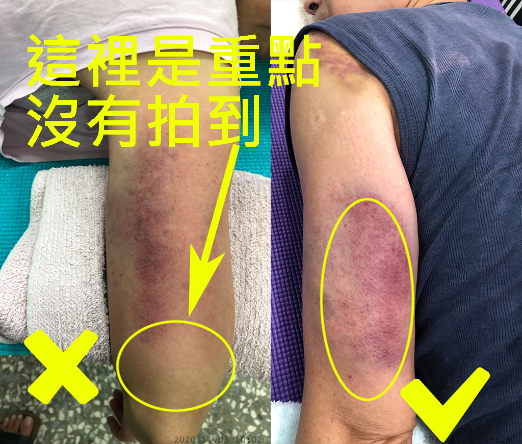 切記: 肩膀拍完後的7-10天的時間內,請勿需要使用大力的使用肩膀的動作,以利於肩膀症狀的修復。