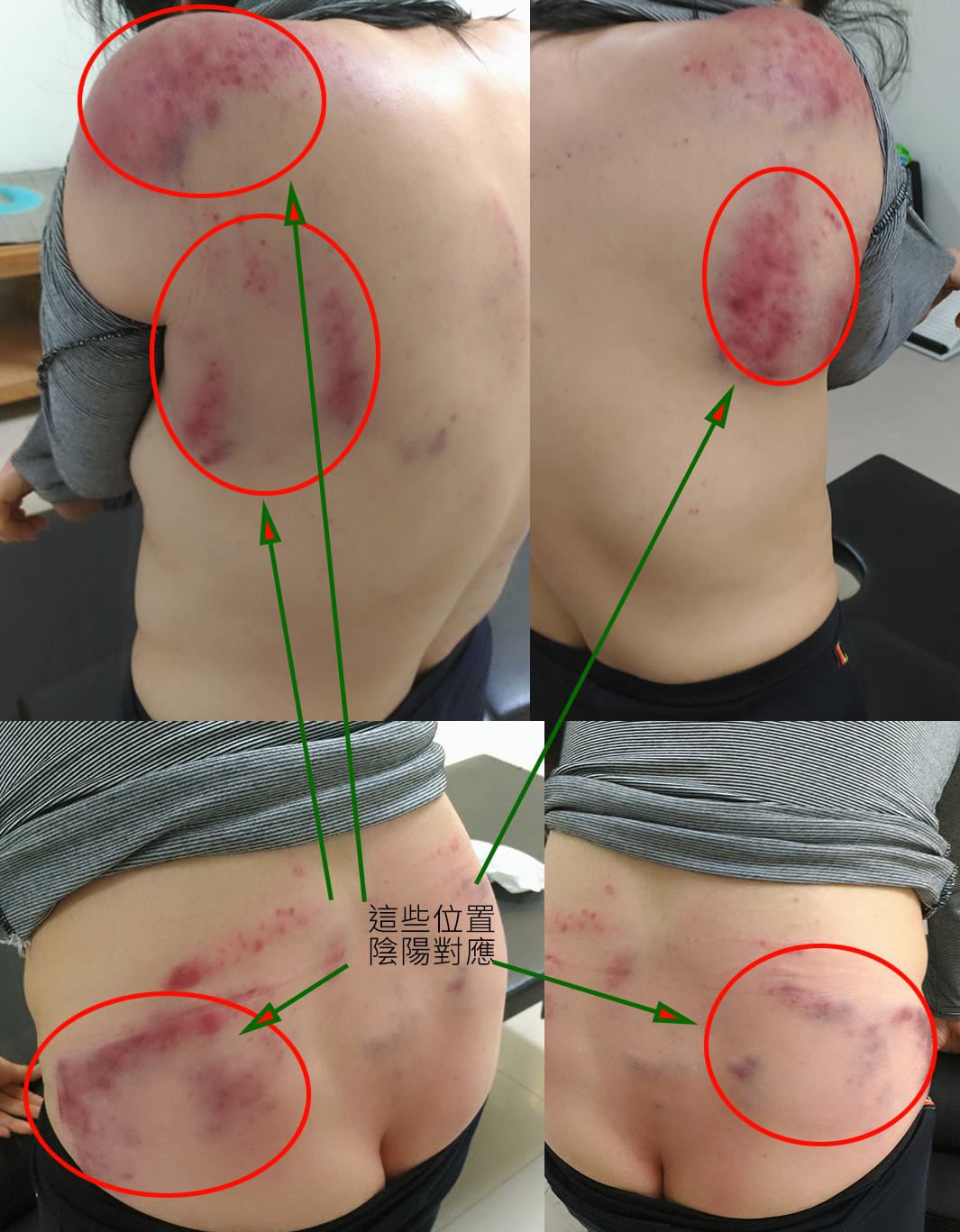 有某個特定的點,有不適的症狀時,可以使用陰陽對位的方式,效果也很不錯,在不適的對應點找痛點拍,如下圖: