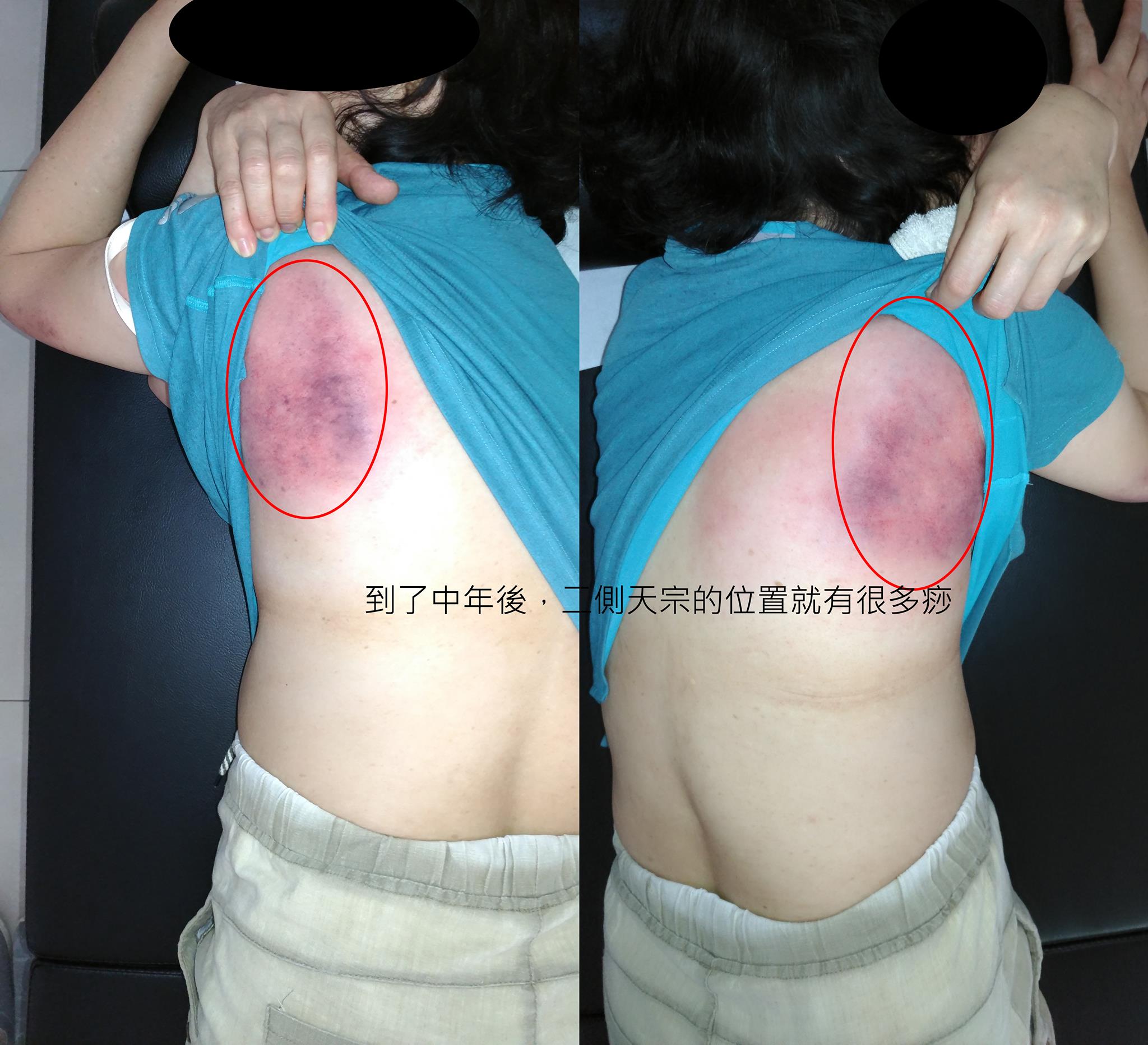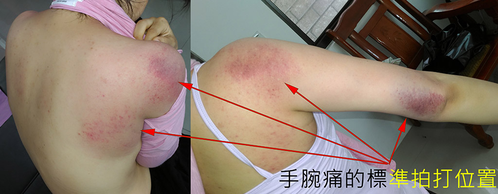 在拍打天宗穴和肘後時,大部份的受拍者都能感受到氣血,流串到整隻手臂,一直到手掌;