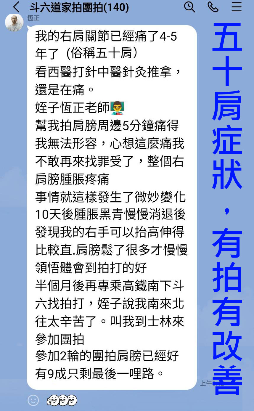 結果昨天她說,助拍並沒有拍肩膀,為何她多年的五十肩症狀好了呢?