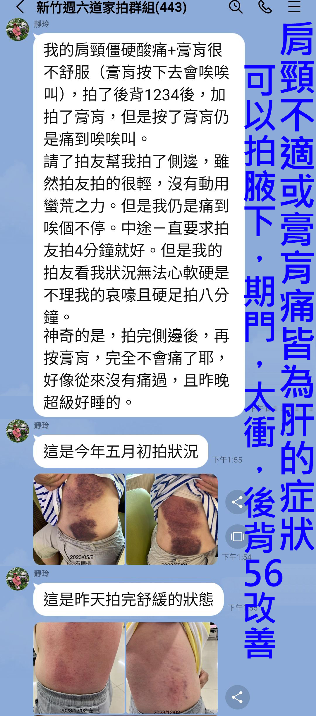 急症時,痛到無法入眠時,請優先拍腋下,依序拍後背56位置,期門,章門,腳背太衝等。