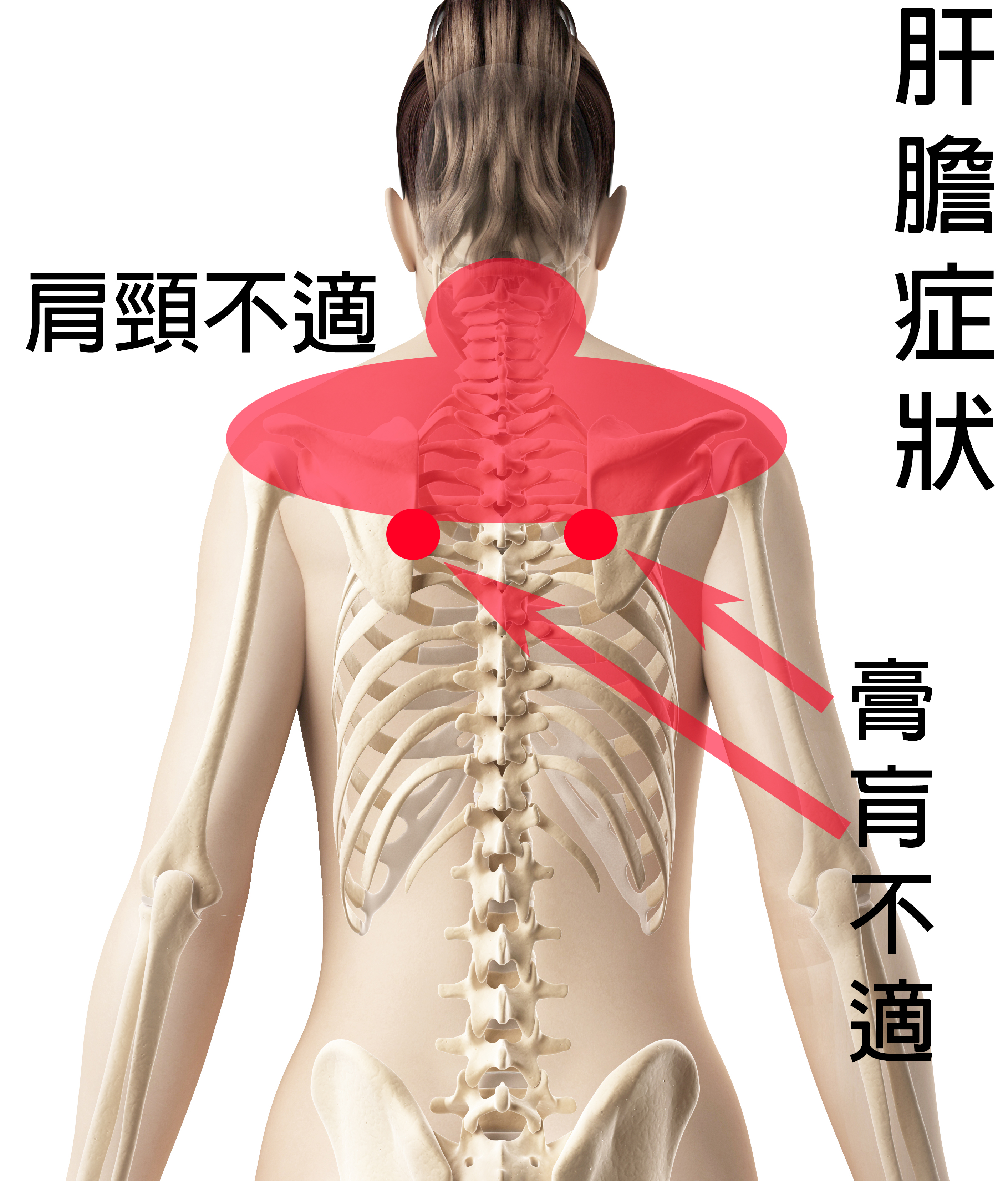 通常整個肩膀的不適,或是單單右側的肩膀不適,為肝膽臟腑的病變所造成的