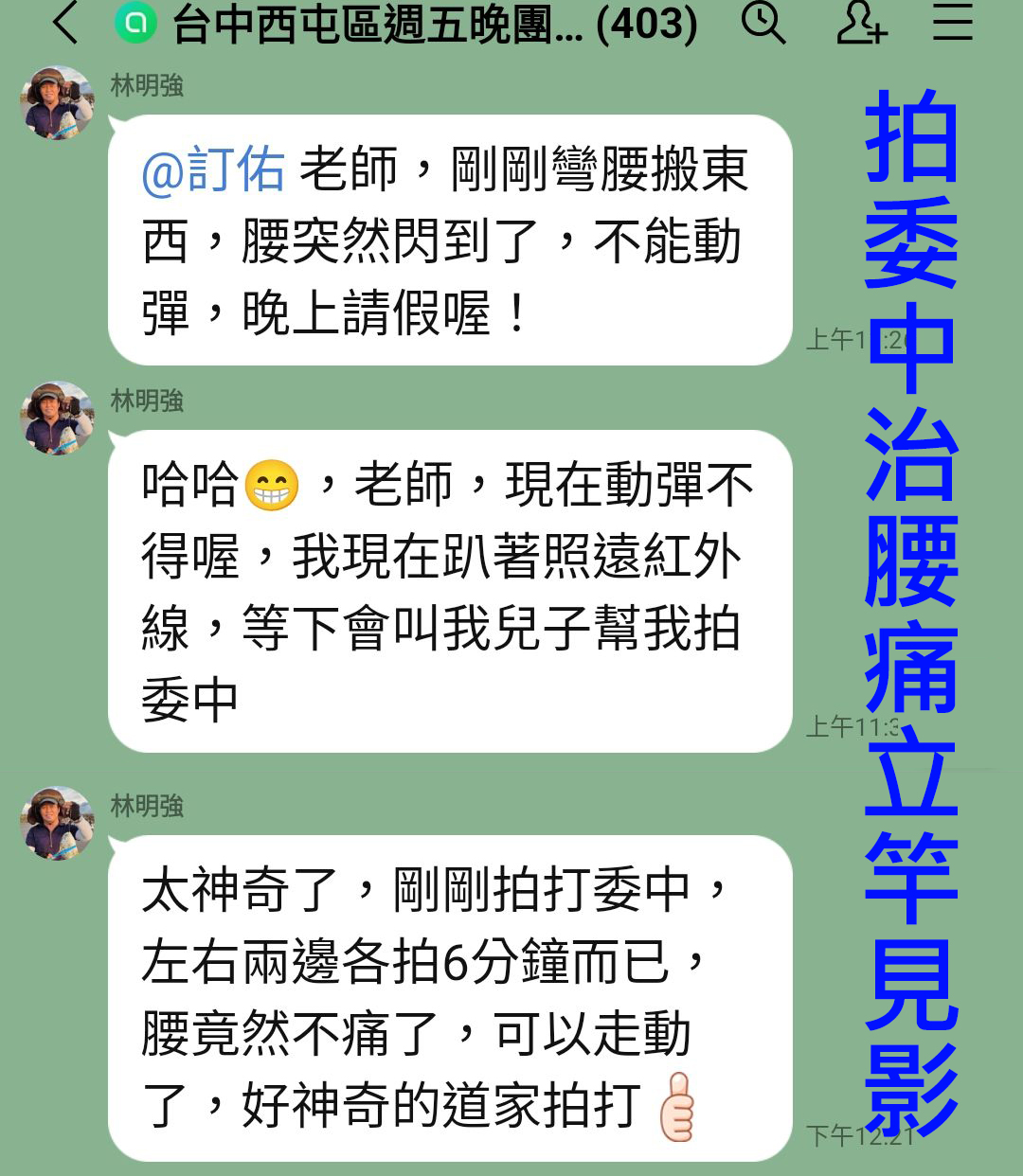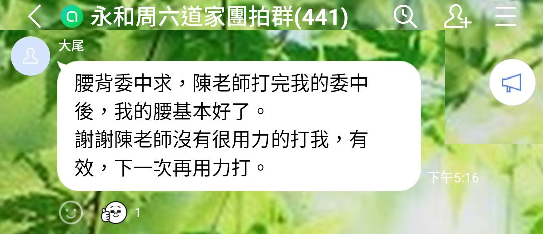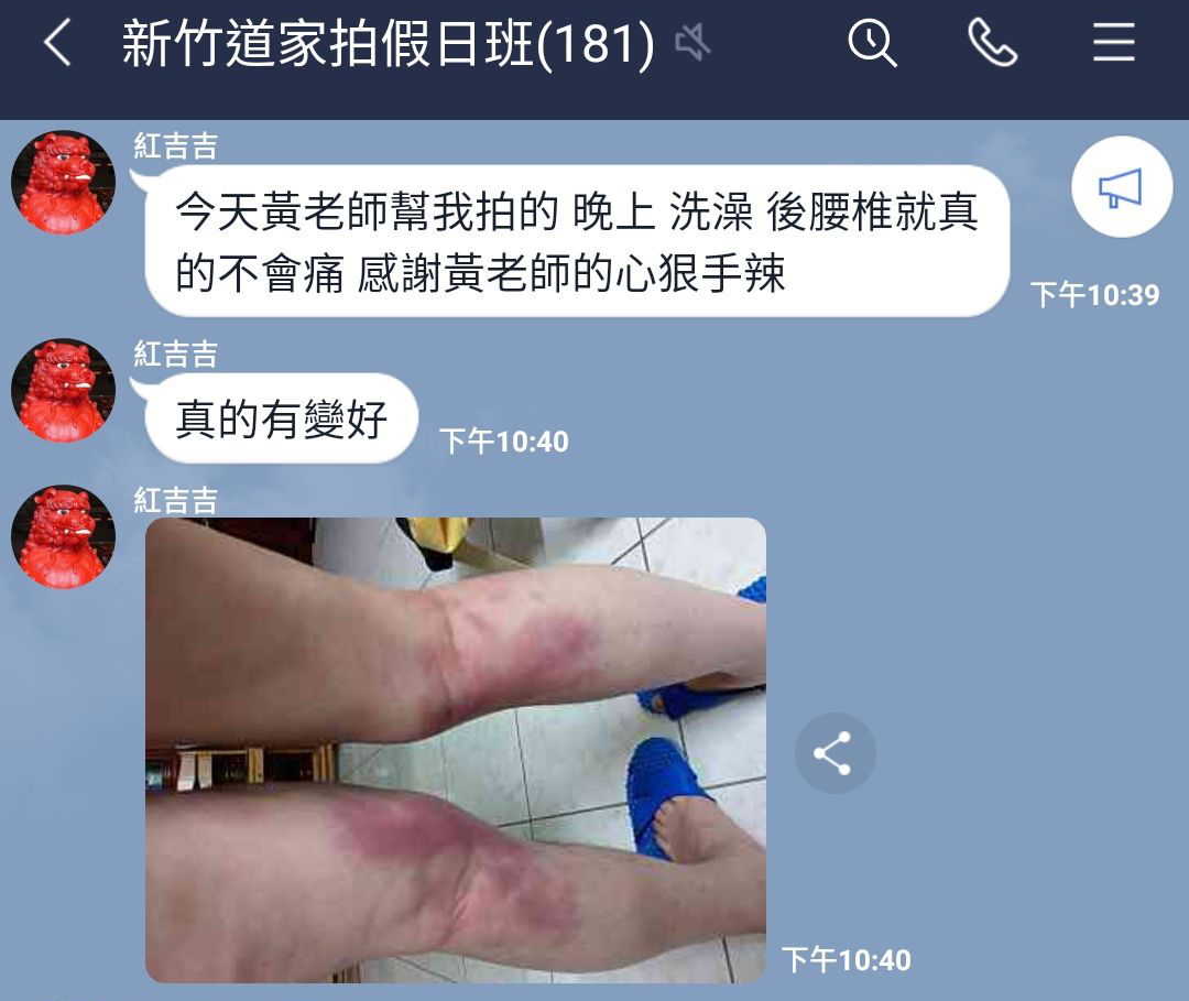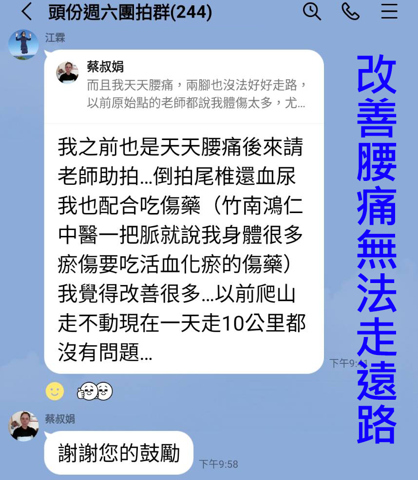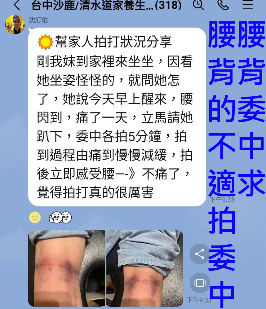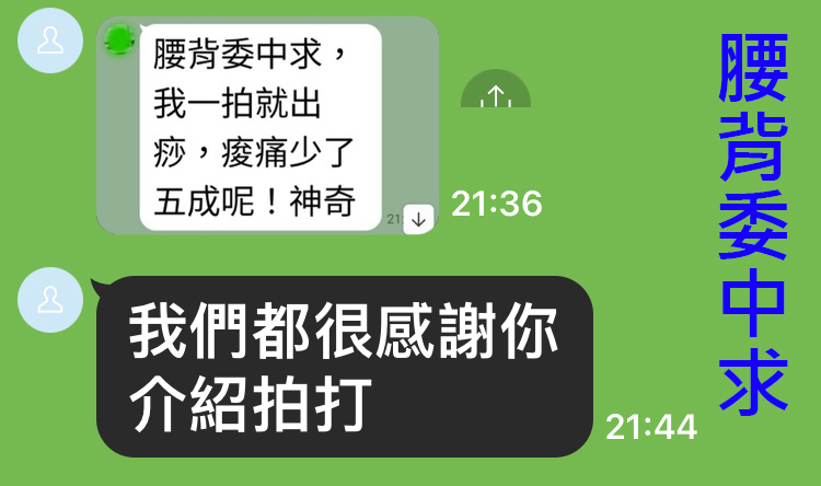 拍打後,腰部的酸痛已舒緩了;
