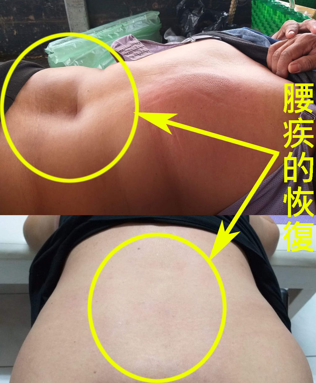 按本頁的拍法外治後,腰痛的情形會改善,如果腰痛的情形,沒有完全好,待痧退完後可以再拍;