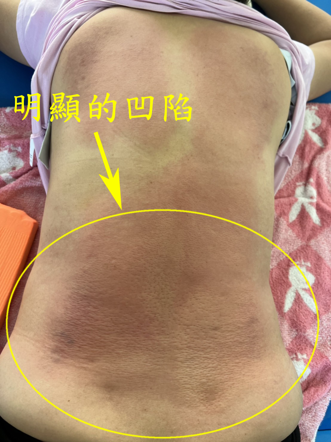 腰區有問題的人,都會顯現出異常的情形,最常見的是凹陷,也有發黑的,或是長疹子...等等。