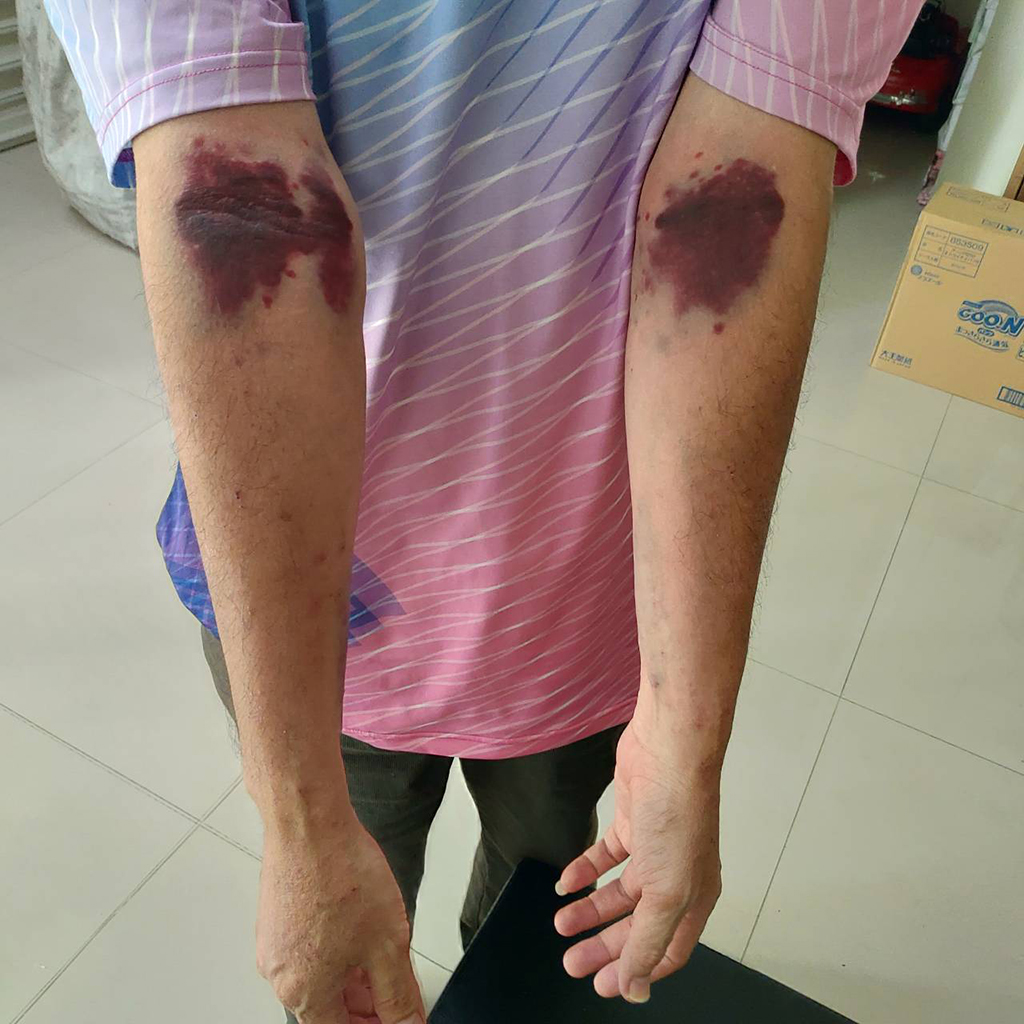 拍手肘時,有些人會拍破皮,這種情形在皮膚不好的人最多,待痧退後,手肘的皮膚會恢復原樣,不會留疤痕。