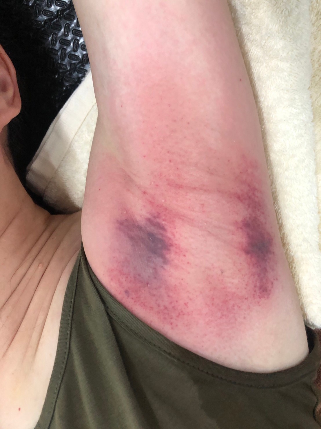 所以在拍這個位置時,如果有拍對位置,也就是長腋毛的地方,大部份的受拍者都可以感受到一直麻到手指去;