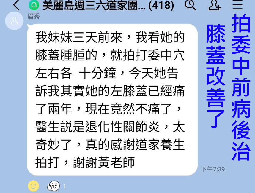問: 請問雙膝已置換人工關節,是否還是否可以拍打八虛的「委中」部位?